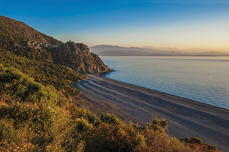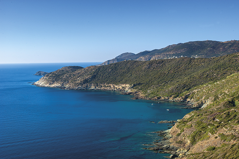 Proseguendo verso sud la costa è un avvicendarsi di pendici immacolate ricoperte da un vellutato mantello vegetale tra cui fanno capolino sporadici paesini a mezzacosta. Un paesaggio magnifico impreziosito da due deliziose calette color smeraldo, la paradisiaca quanto solitaria Anse d’Aliso (ad agosto non vi abbiamo incontrato nemmeno una barca) con la sua piccola spiaggia di sabbia bianca, e Marine de Giottani che trova spazio tra due massicci promontori ospitando una bella spiaggia di ciottoli e un minuscolo borgo con porticciolo adiacente a una torre genovese diroccata.