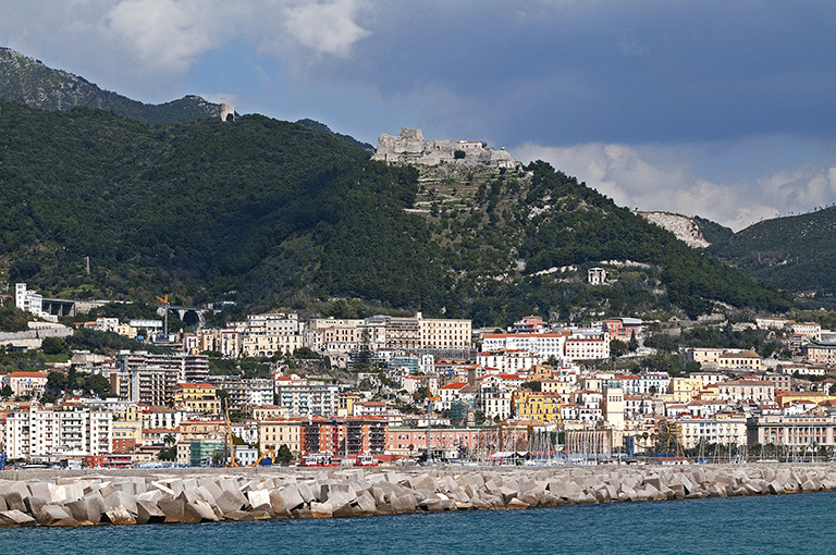 Salerno è una grande città portuale che può essere utilizzata come sosta per via della disponibilità di posti barca nei tre porticcioli del Porto Turistico Masuccio Salernitano, del porticciolo che sta a cavallo della diga foranea del porto commerciale o di quello interno al porto commerciale, distanti fra loro solo 2,5 miglia. Salerno vista dal mare non è brutta come invece si sente dire, ricorda un po’ Spalato in Croazia e il castello che la sovrasta è notevole. Appena usciti dal centro abitato di Salerno si accede al territorio di Vietri sul Mare, che si distingue da Vietri Alta e altre frazioni sulla collina intorno.