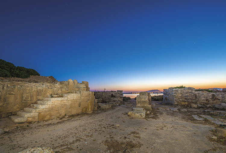 Come ci racconta la dottoressa Maria Pamela Toti, archeologa della fondazione, questo particolare ambiente naturale fu scelto dai Fenici, intraprendenti mercanti e grandi navigatori, come sede di una importante città: Mozia (in fenicio MTW = porto/approdo), da essi fondata nell’VIII secolo a.C.. L’insediamento si sviluppò nel corso dei secoli per raggiungere, probabilmente nel V sec. a.C., il massimo dell’espansione occupando l’intera superficie dell’isola, circa 45 ettari. Le ricostruzioni archeologiche ci mostrano una possente cinta muraria, nella quale si aprivano diverse porte, che circondava e proteggeva la città. Sul lato nord un terrapieno lungo 1.700 metri e largo 7, costruito attraverso lo Stagnone nel punto in cui la profondità dell’acqua era minore, collegava la città insulare con la terraferma, assicurando l’approvvigionamento di derrate alimentari e materiale da costruzione, oltre a costituire un lungo molo per l’attracco delle imbarcazioni. Ancora oggi questa strada è visibile appena sotto il pelo dell’acqua e piace l’idea che fosse così anche allora, in modo da essere invisibile agli ignari nemici. Solo quando il vento di tramontana soffia forte in laguna la strada magicamente appare in tutta la sua interezza emergendo dall’acqua.