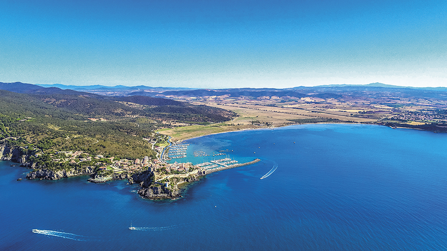 È sera, ho appena acceso la lampada a petrolio, che rischiara le mie notti all’ormeggio e funge da luce da fonda. Sono disteso nel pozzetto della mia barca e, cullato dal leggero rollio, osservo l’ampia e calma distesa d’acqua, il vento spira da terra, leggero, la fiamma della lampada traballa e nella mia mente affiorano pensieri di navi, di marinai e di storie passate. Il paesaggio è cambiato poco da quando i mitici Argonauti calarono su questi fondali le loro ancore, poi fu la volta dei Greci, che cercavano mercati per le loro mercanzie; quindi gli Etruschi che scambiavano il minerale ferroso delle loro miniere elbane e che qui lo fondevano e barattavano; le navi mercantili romane che utilizzavano il Portus Telamonis come porto di arrivo o intermedio, sulle rotte che dal nord Africa passavano per la Sardegna e le isole Toscane. Non vi navigarono i Barbari perché avevano scarsa dimestichezza con la navigazione marittima.
