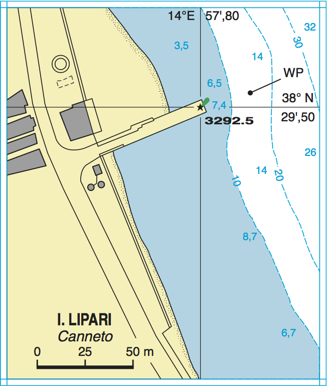 Porto I. Lipari - Canneto descrizione della darsena planimetria servizi attrezzature informazioni nautiche waypoint e tutti i servizi.