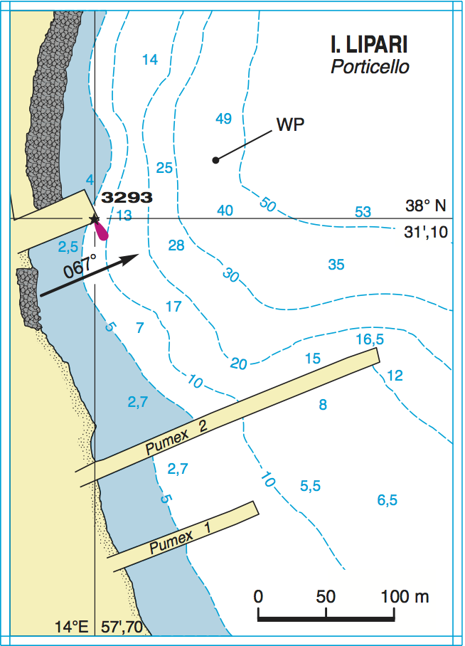 Porto I. Lipari - Porticello descrizione della darsena planimetria servizi attrezzature informazioni nautiche waypoint e tutti i servizi.