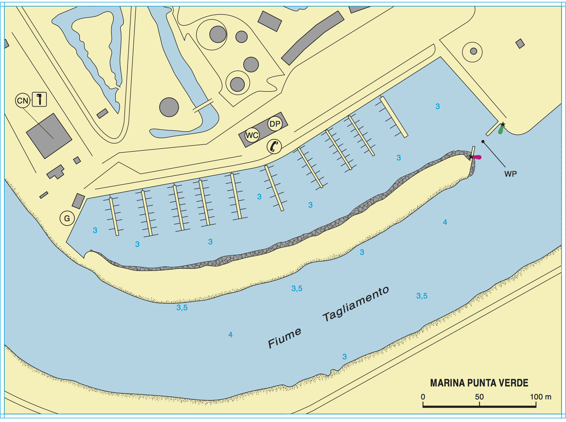 Fiume Tagliamento approdo e ormeggio, servizi, attrezzature, waypoint, accesso, lunghezza massima, posti barca, traversia e meteo.