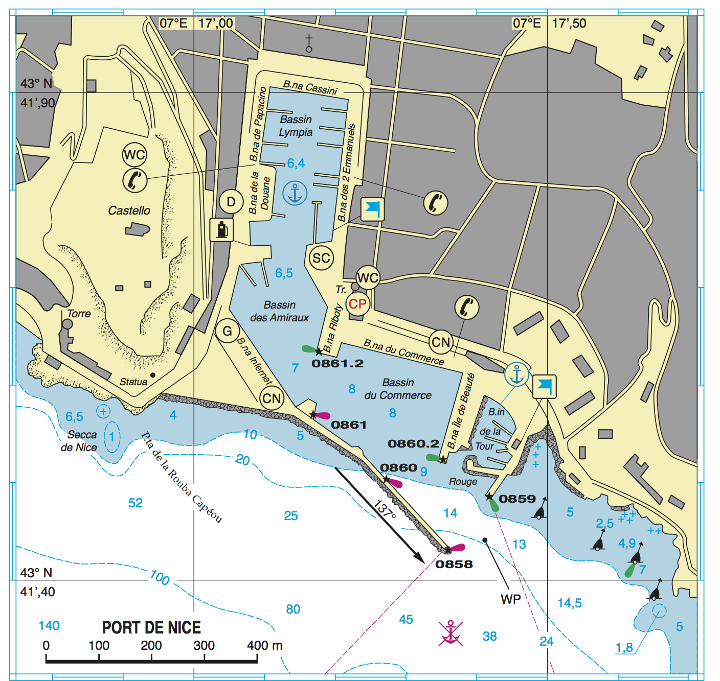 Port De Nice approdo e ormeggio, servizi, attrezzature, waypoint, accesso, lunghezza massima, posti barca, traversia e meteo.