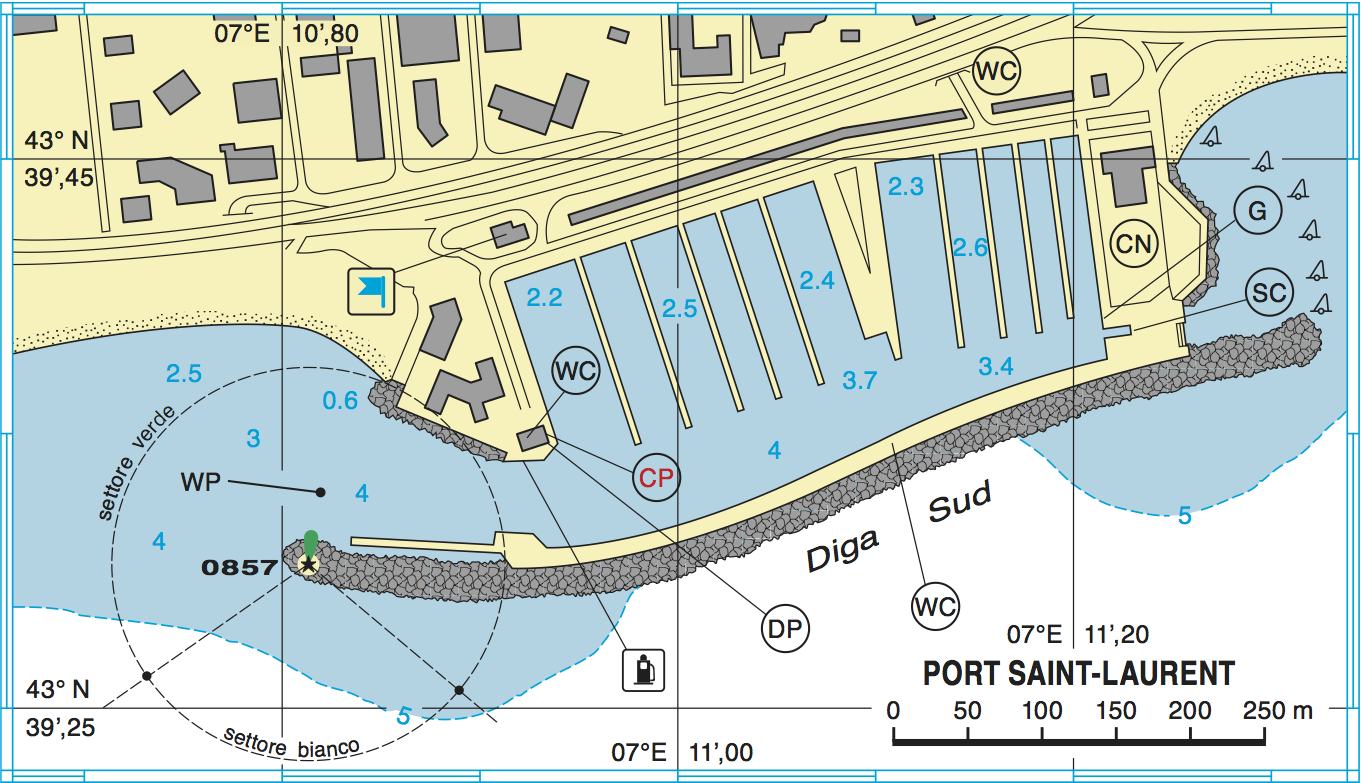Port Saint-Laurent approdo e ormeggio, servizi, attrezzature, waypoint, accesso, lunghezza massima, posti barca, traversia e meteo.